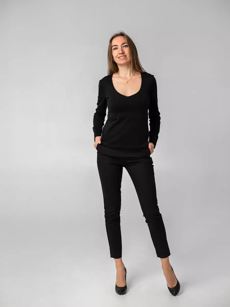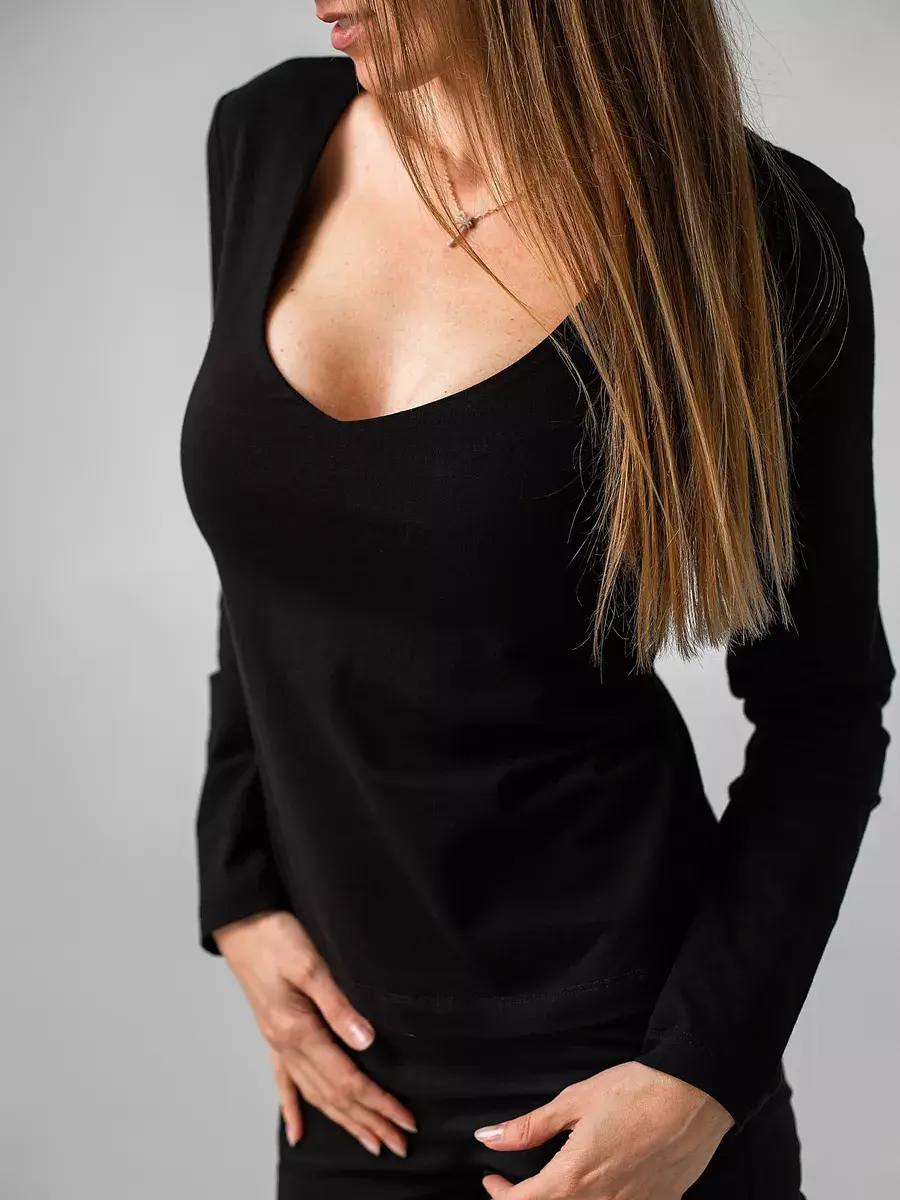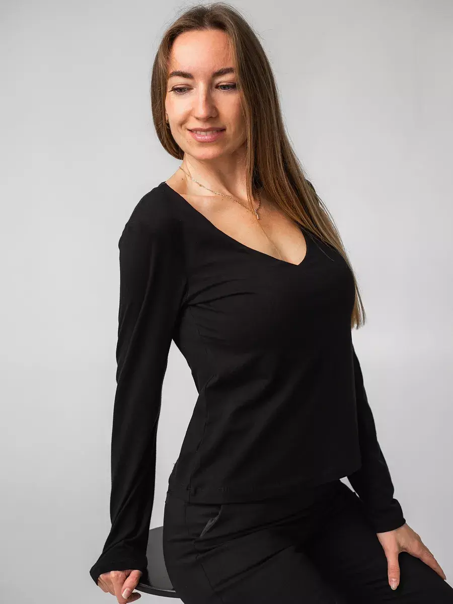 Лонгслив с v вырезом черный