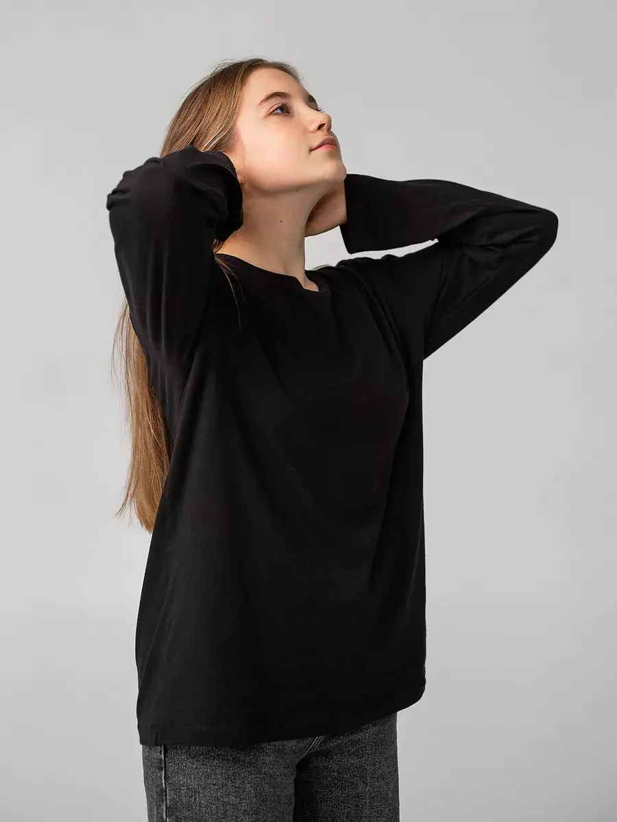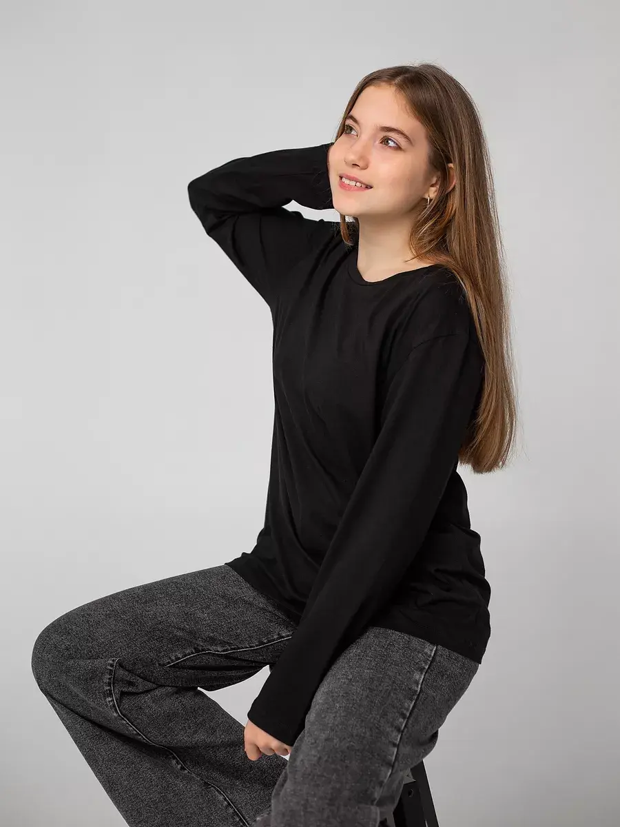 Лонгслив женский оверсайз трикотажный трендовый и базовый стал незаменимой частью гардероба девушек и женщин. Лонгслив с длинным рукавом подходит к джинсам, брючным изделиям и юбкам. Модная и стильная кофта имеет круглый ворот и прямой крой, не сковывает движений, комфортный стиль одежды. Белый лонгслив отлично подойдет для занятий спортом, также ее можно сочетать в зимнее, осеннее или весеннее время в летние месяцы. Черный лонгслив женский удлинённый незаменимая вещь для повседневной носки на любое время года. Длинный лонгслив женский оверсайз подойдёт в качестве базовой одежды в офис на учебу на прогулку встречу с друзьями путешествие подходит также для беременных и кормящих. Водолазка женская отлична для создания образа в стиле смарт-кэжуал. Лонгслив женский спортивный подойдёт для активного отдыха, занятий йогой. Модная модель толстовка станет отличным подарком для подруги, девушки и жены, прекрасная идея для подарка. Спортивный лонгслив рекомендуется стирать при деликатном режиме не более 30 градусов. Лонгслив свитшот представлены большие размеры и маленькие размеры. Бомбер мягкий натуральный хлопок лонга гипоаллергенен, не раздражает кожу и позволяет ей дышать. Представленную модель в стиле корейской одежды можно использовать как одежда для дома, носить на работу, в офис, в школу или университет, а также надевать на вечерние посиделки с подружками. Данный вариант можно носить как спортивный, для фитнеса. Он подойдёт для высоких и невысоких женщин, для полных, беременных и кормящих. Отличная базовая футболка оверсайз (oversize) с длинным рукавом для создания образов – отдельная кофта, так и под пиджак оверсайз, жилетку, бомбер, теплую рубашку, кардиган, пуловер, толстовка. Отлично смотрится с юбкой и джинсами с завышенной талией. Красивая и приятная кофта также подойдет полным девушкам (plus size). Кофта трикотажная всесезонное. Стильный лонг свободный классно подойдет подросткам. Базовые цвета подойдут для подростка и девочек в школу, как школьная форма.