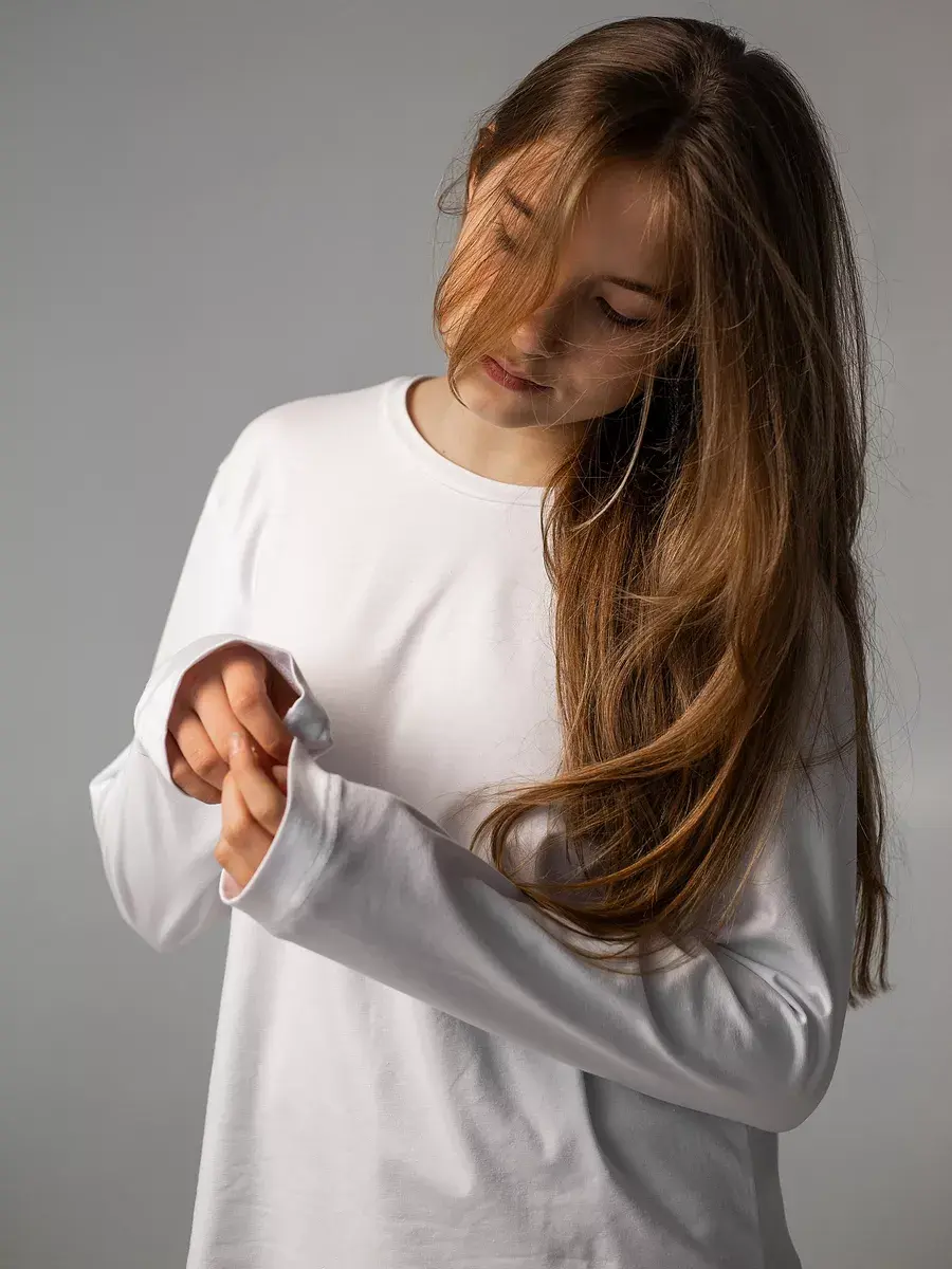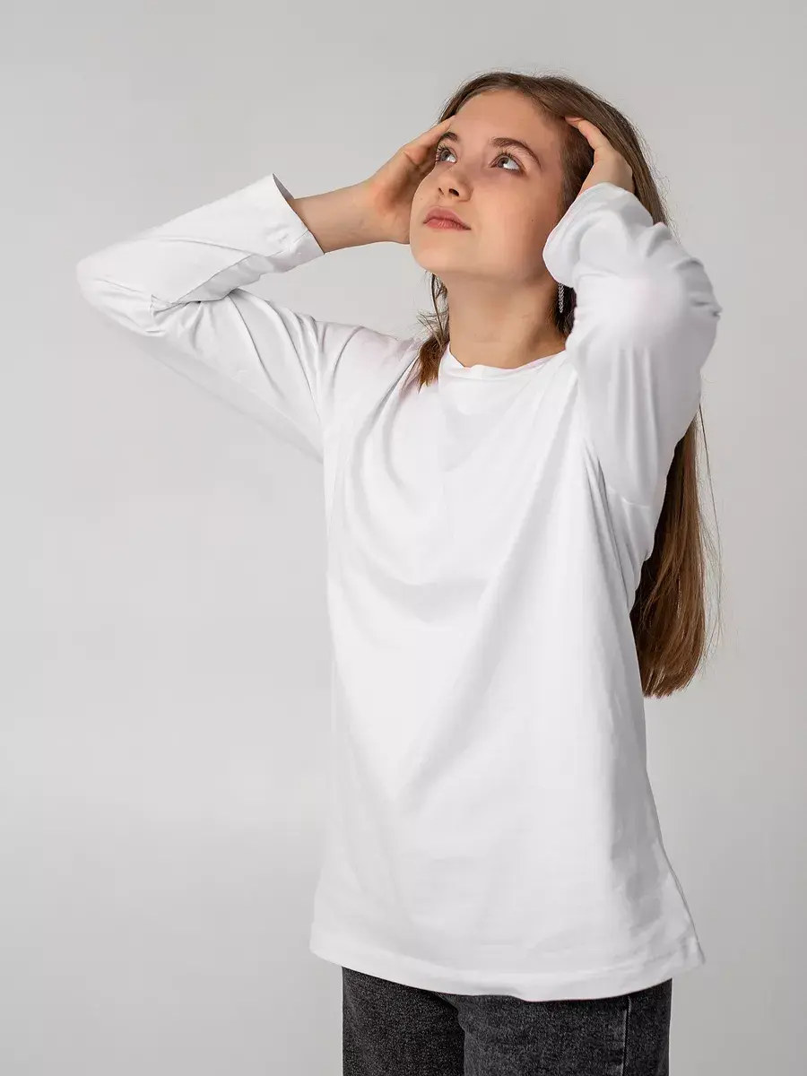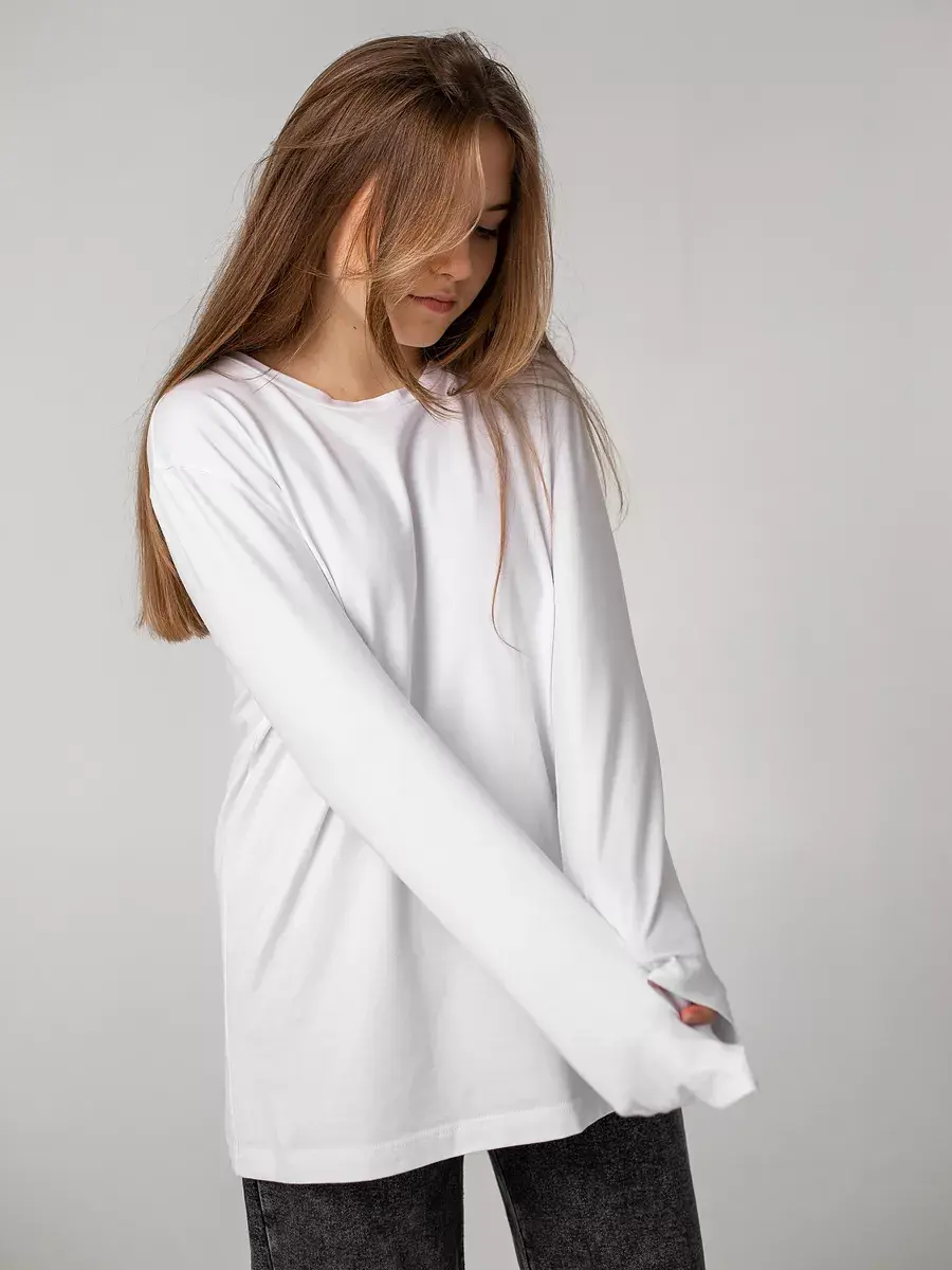 Лонгслив женский оверсайз трикотажный трендовый и базовый стал незаменимой частью гардероба девушек и женщин. Лонгслив с длинным рукавом подходит к джинсам, брючным изделиям и юбкам. Модная и стильная кофта имеет круглый ворот и прямой крой, не сковывает движений, комфортный стиль одежды. Белый лонгслив отлично подойдет для занятий спортом, также ее можно сочетать в зимнее, осеннее или весеннее время в летние месяцы. Черный лонгслив женский удлинённый незаменимая вещь для повседневной носки на любое время года. Длинный лонгслив женский оверсайз подойдёт в качестве базовой одежды в офис на учебу на прогулку встречу с друзьями путешествие подходит также для беременных и кормящих. Водолазка женская отлична для создания образа в стиле смарт-кэжуал. Лонгслив женский спортивный подойдёт для активного отдыха, занятий йогой. Модная модель толстовка станет отличным подарком для подруги, девушки и жены, прекрасная идея для подарка. Спортивный лонгслив рекомендуется стирать при деликатном режиме не более 30 градусов. Лонгслив свитшот представлены большие размеры и маленькие размеры. Бомбер мягкий натуральный хлопок лонга гипоаллергенен, не раздражает кожу и позволяет ей дышать. Представленную модель в стиле корейской одежды можно использовать как одежда для дома, носить на работу, в офис, в школу или университет, а также надевать на вечерние посиделки с подружками. Данный вариант можно носить как спортивный, для фитнеса. Он подойдёт для высоких и невысоких женщин, для полных, беременных и кормящих. Отличная базовая футболка оверсайз (oversize) с длинным рукавом для создания образов – отдельная кофта, так и под пиджак оверсайз, жилетку, бомбер, теплую рубашку, кардиган, пуловер, толстовка. Отлично смотрится с юбкой и джинсами с завышенной талией. Красивая и приятная кофта также подойдет полным девушкам (plus size). Кофта трикотажная всесезонное. Стильный лонг свободный классно подойдет подросткам. Базовые цвета подойдут для подростка и девочек в школу, как школьная форма.