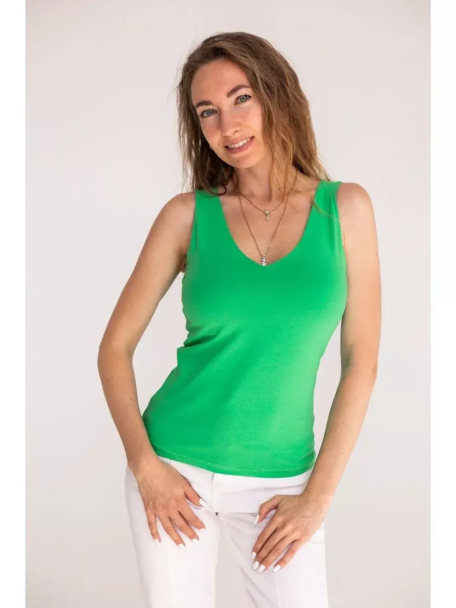 V-образный вырез, широкие бретели, двойной подклад в зоне груди