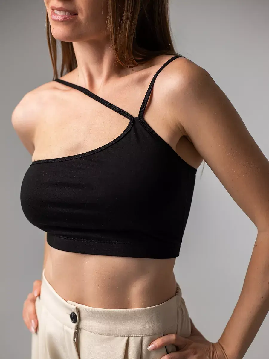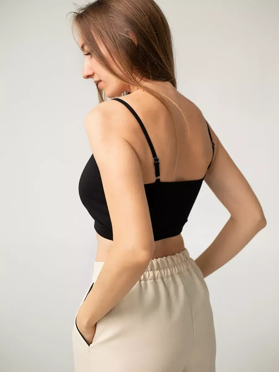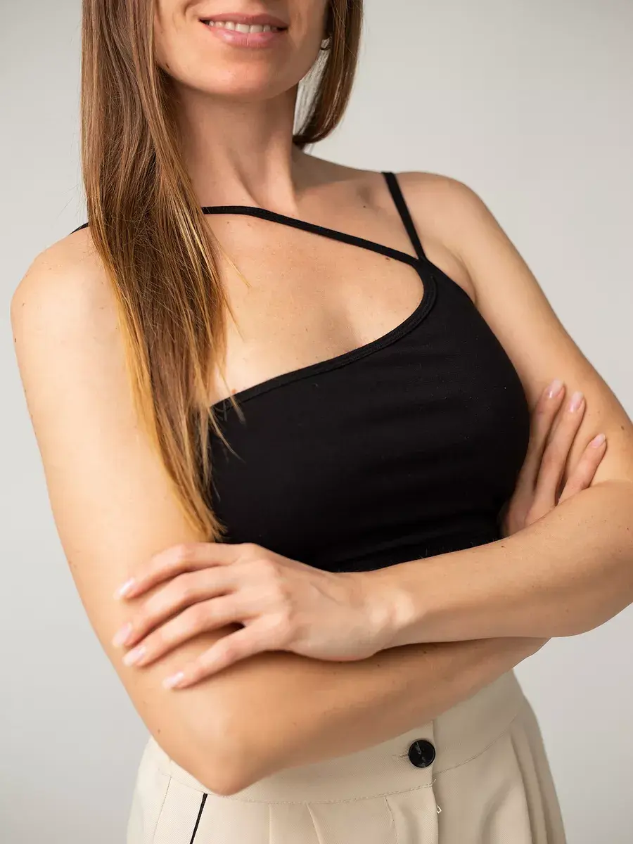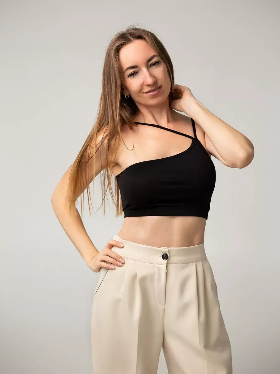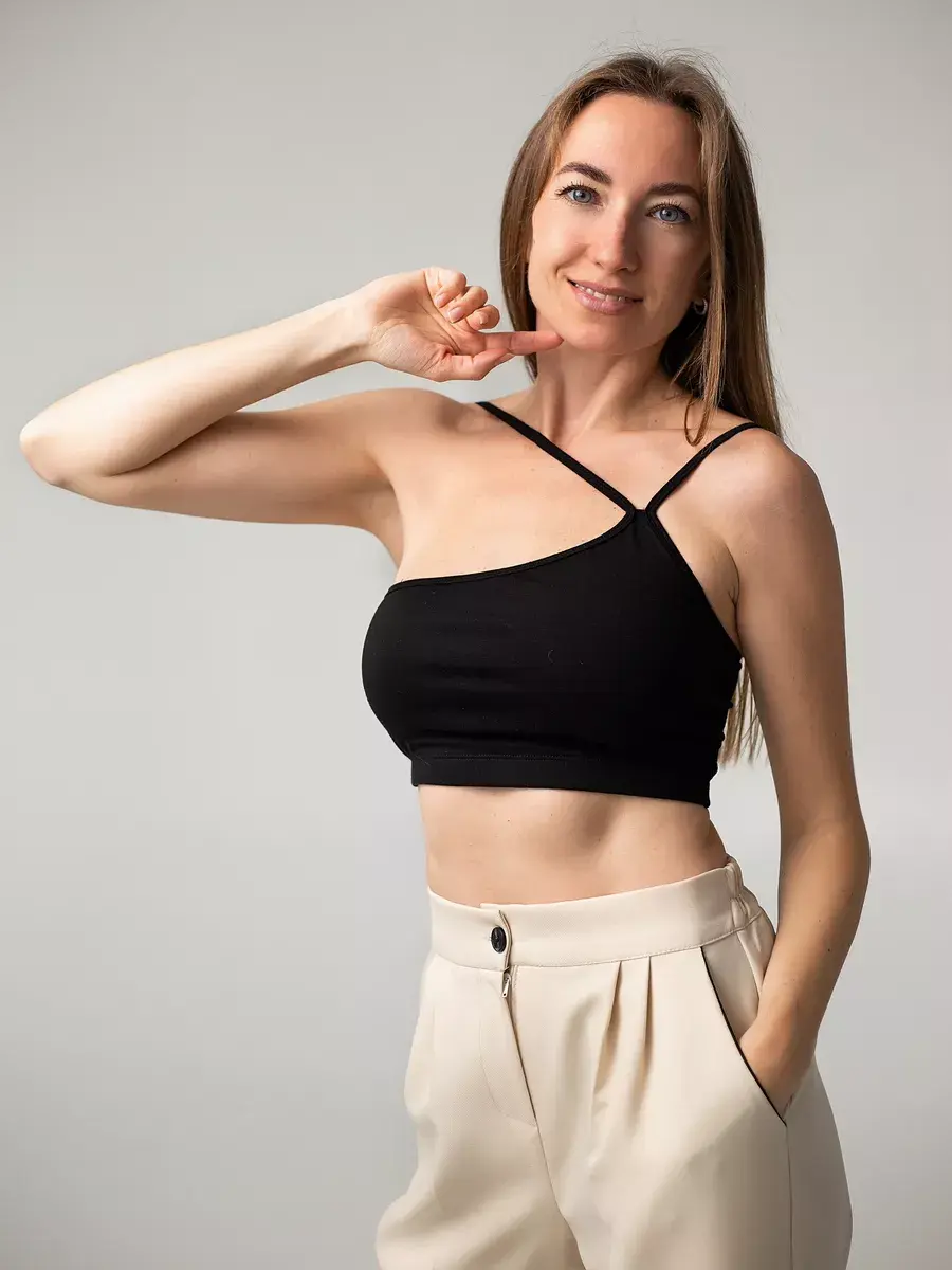 Сексуальный кроп топ с на тонких лямках сделает Ваш образ манящим и женственным. Многофункциональный обтягивающий кроп-топ будет базовым элементом гардероба. Трендовый короткий топ с тонкими бретелями имеет двойной подклад. Топик имеет возможность вставить чашки по-своему усмотрению, идеален для спорта, фитнеса, гимнастики, йоги, тренировки в спортзале или пробежки на воздухе. Универсальный однотонный топ бандо позволяет создать несколько образов. Топ лиф на бретельках подойдет на работу или учебу, праздничное мероприятие или новогоднюю вечеринку. Нарядный топ-халтер на лямках с открытым животом отлично подойдет под пиджак, как одежда на пляж (пляжный) и фотосессии, для танцев (танцевальная одежда), а также как лиф для купальника (купальный), для отдыха и путешествий. Размерный ряд позволяет подобрать нужный размер для высоких женщин и среднего роста. Молодежный красивый топ-бра подойдет для девочки подростка в школу и как тренировочная форма для бега, на физкультуру в школу или занятия по танцам. Топы с перекрестными лямками без рукавов отлично подойдут для танцевальных направлений: twerk тверк, брейк – данс, high heels, strip dance, pole dance, стрип пластика, шафл, хип хоп. Двухслойный женский топ на тонких бретелях, как и футболка является базовой вещью любого гардероба. Базовый черный кроп на лямках стильно смотрится с джинсами и брюками, юбкой и шортами, под прозрачную кофту с длинными рукавами или блузу в сетку со стразами, блестками или пайетками. Майка женская отлично подойдет беременным и кормящим. Топ-лифчик майка можно использовать как пижамная бельевая маечка одежда для дома или верхняя часть набора для сна. Короткие топы в стиле y2k отлично подойдут на лето и другие сезоны. Такая одежда для дома, отлично садится как на большую грудь, так и на маленькую. Отсутствие косточек и плоские швы делают этот спортивный бюстгальтер с чашками практически незаметным под одеждой, как бесшовный бельевой лиф. Тонкие и широкие бретели изящно подчеркнут плечи.