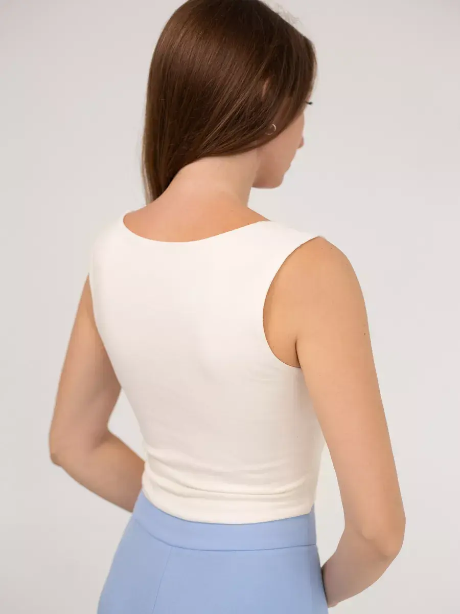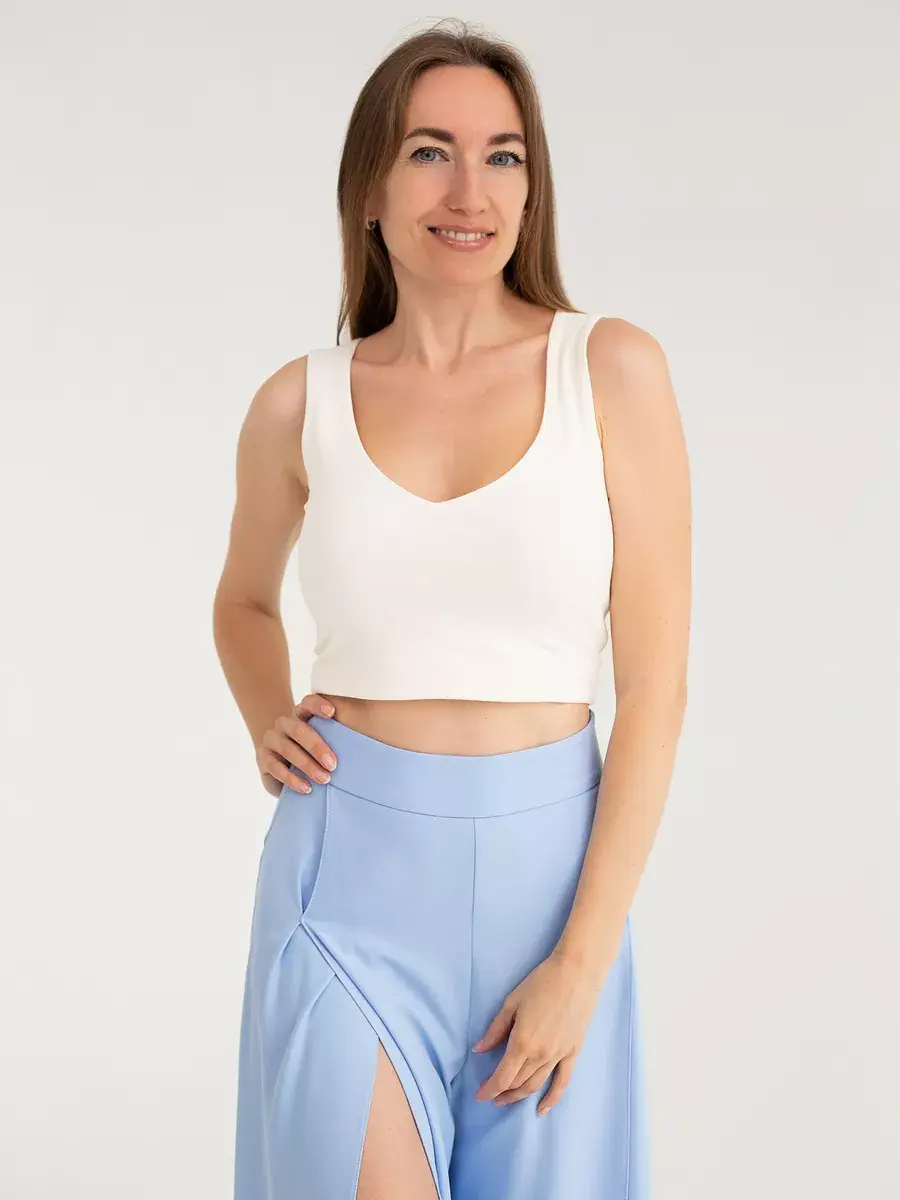 Топ с V-образным вырезом добавляет привлекательности зоне декольте.