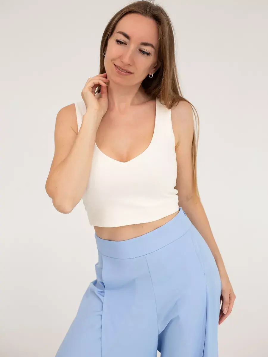 Топ-бра имеет подклад в области выреза каре, что позволяет не надевать бюстгальтер в жаркое время года.