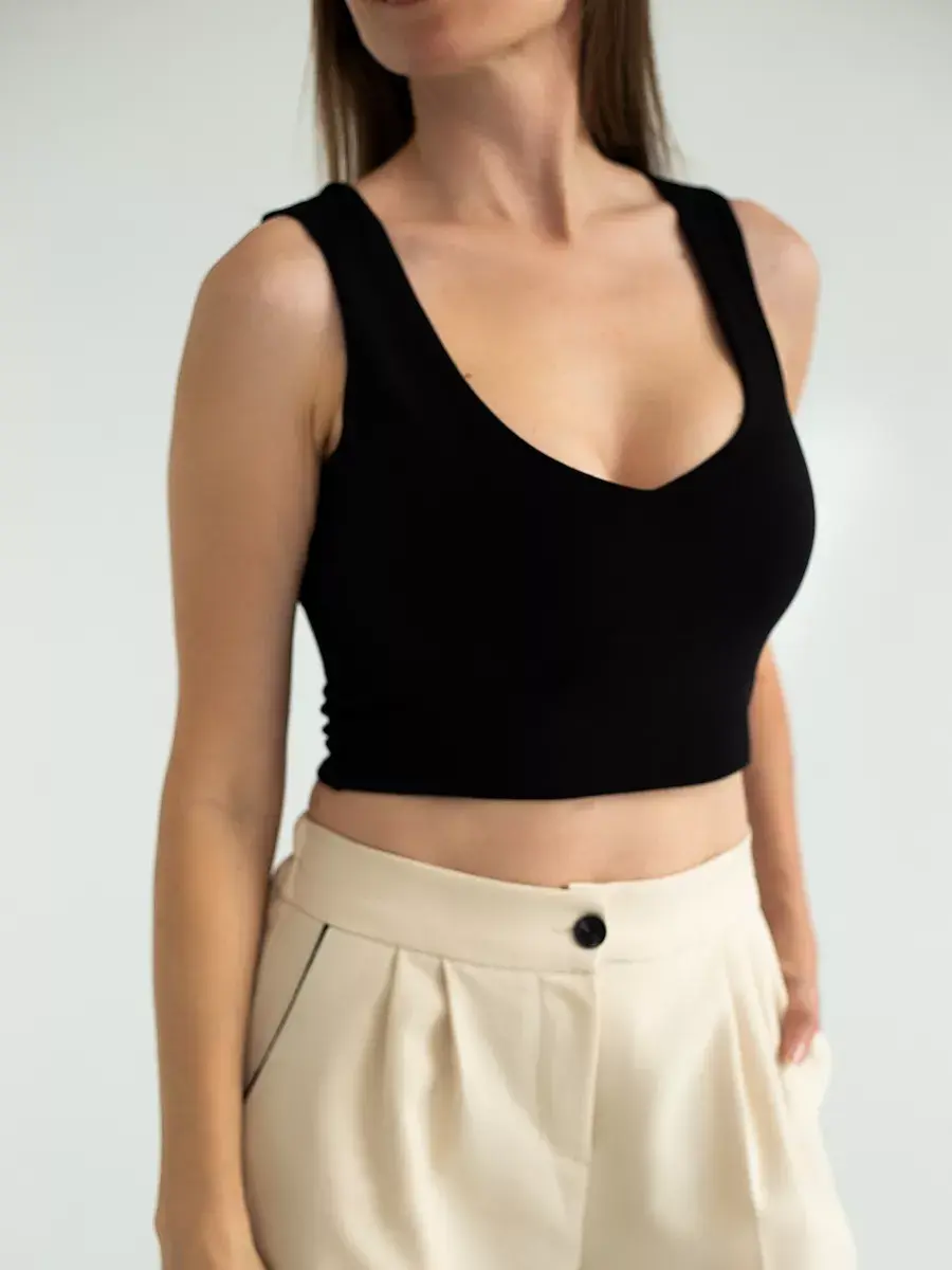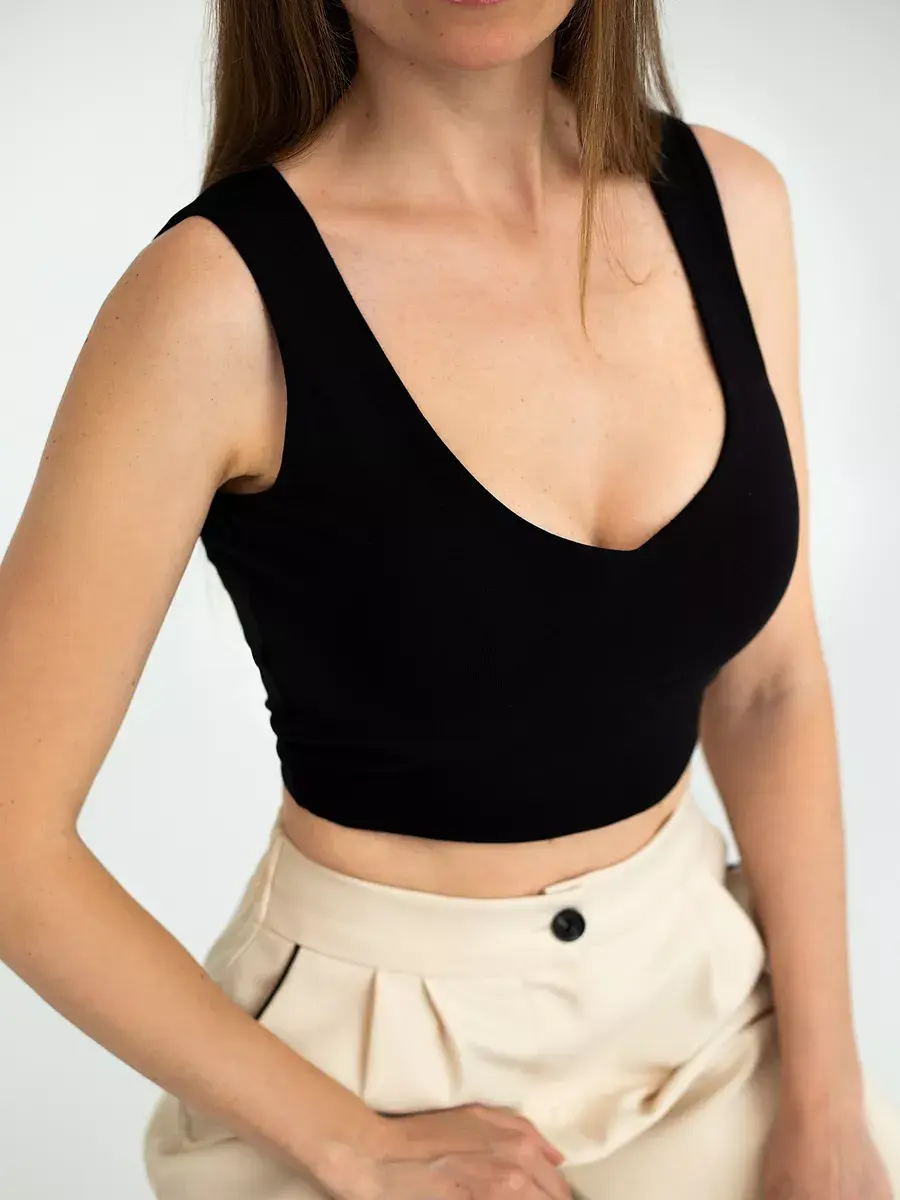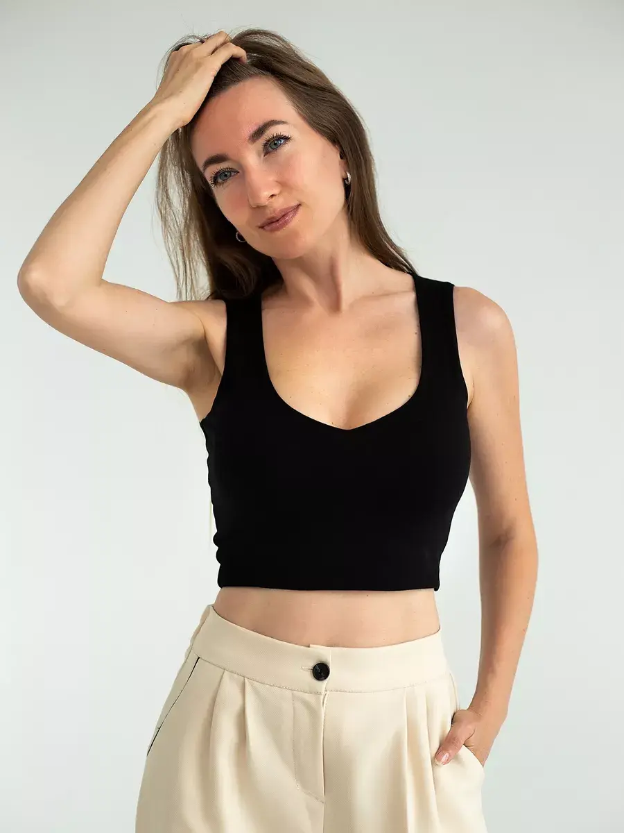 Топ с V-образным вырезом добавляет привлекательности зоне декольте.