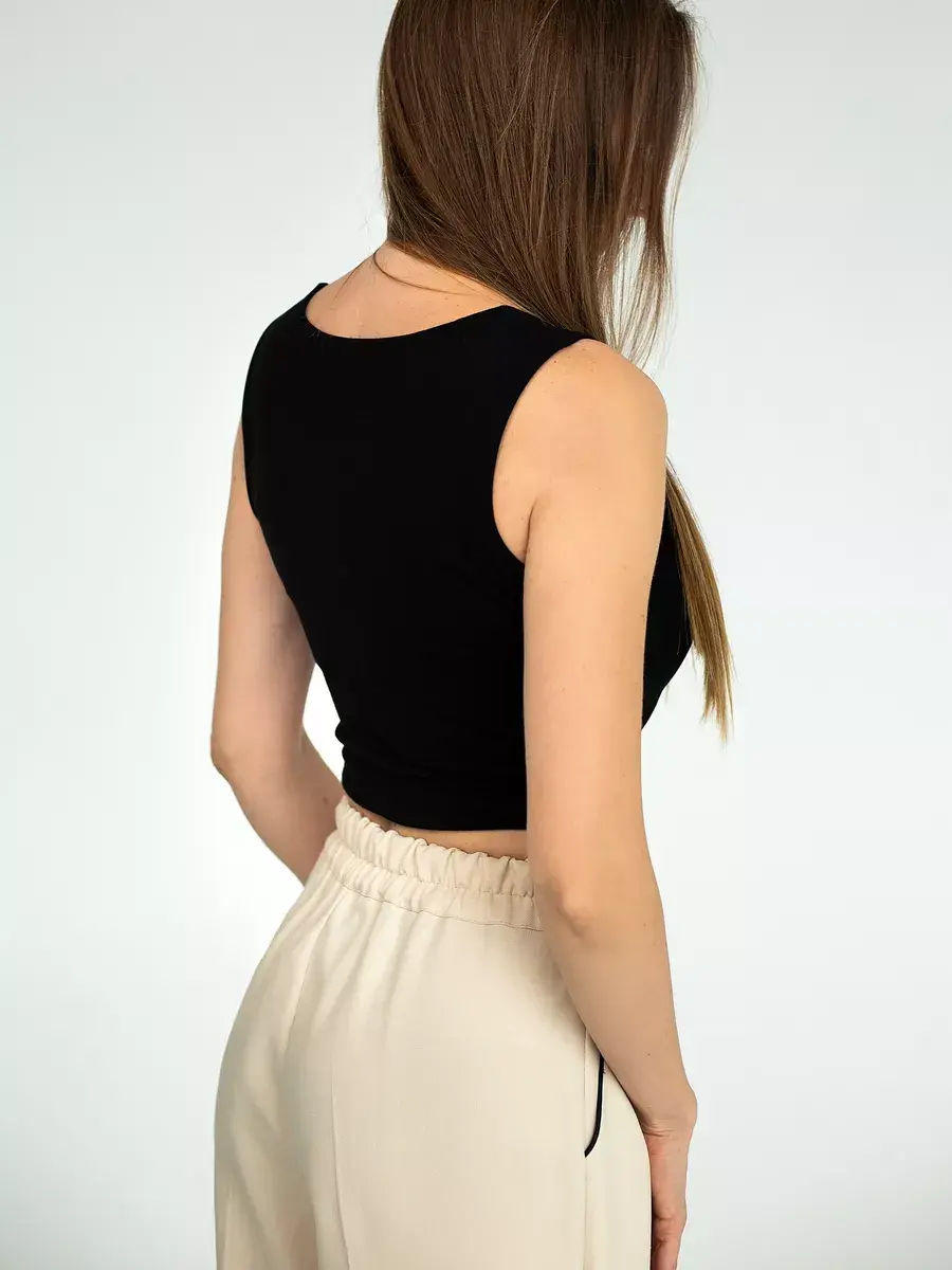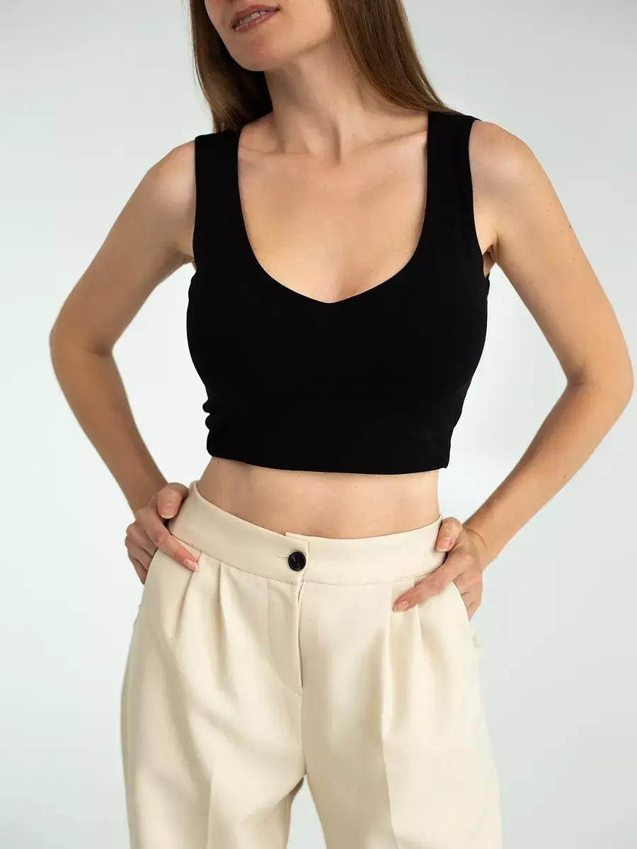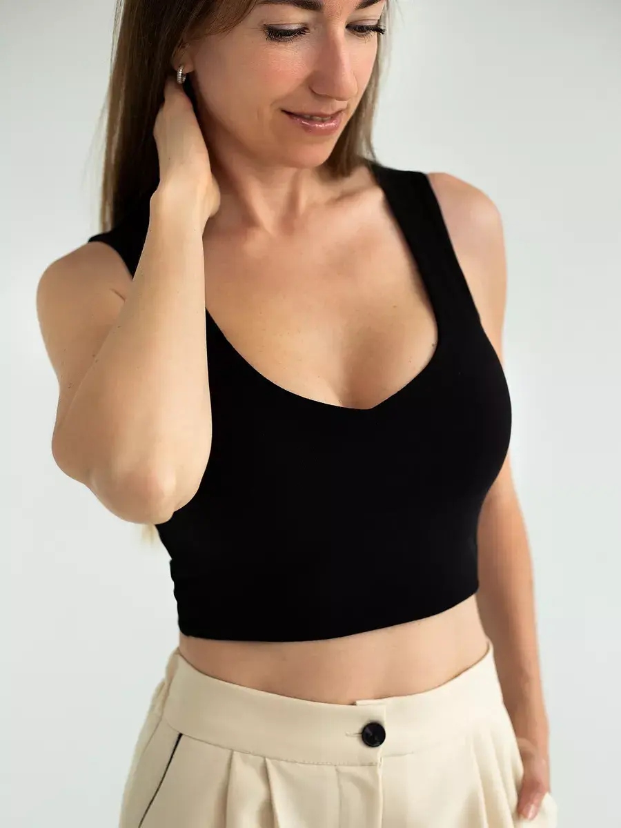 Топ с V-образным вырезом добавляет привлекательности зоне декольте.