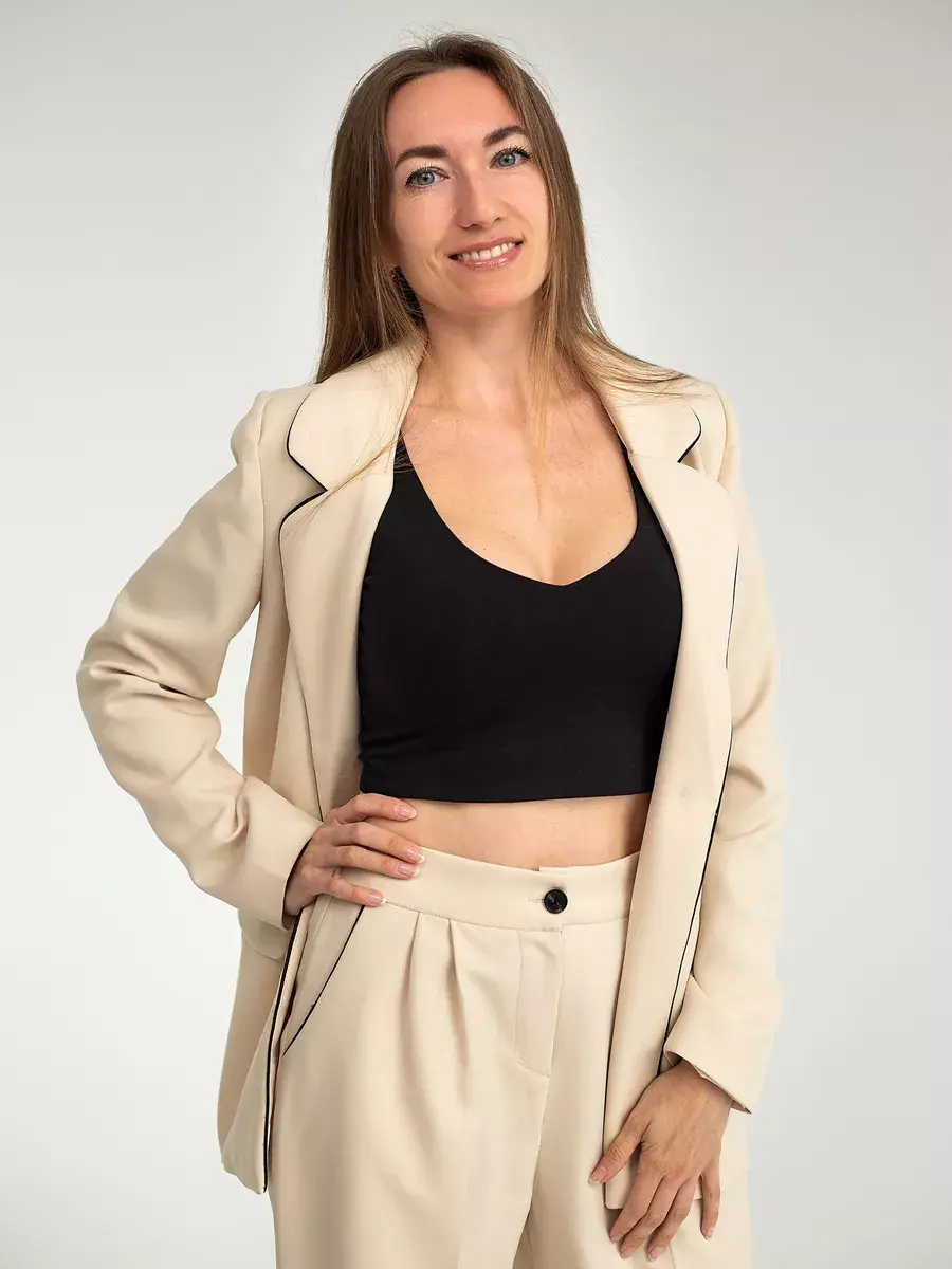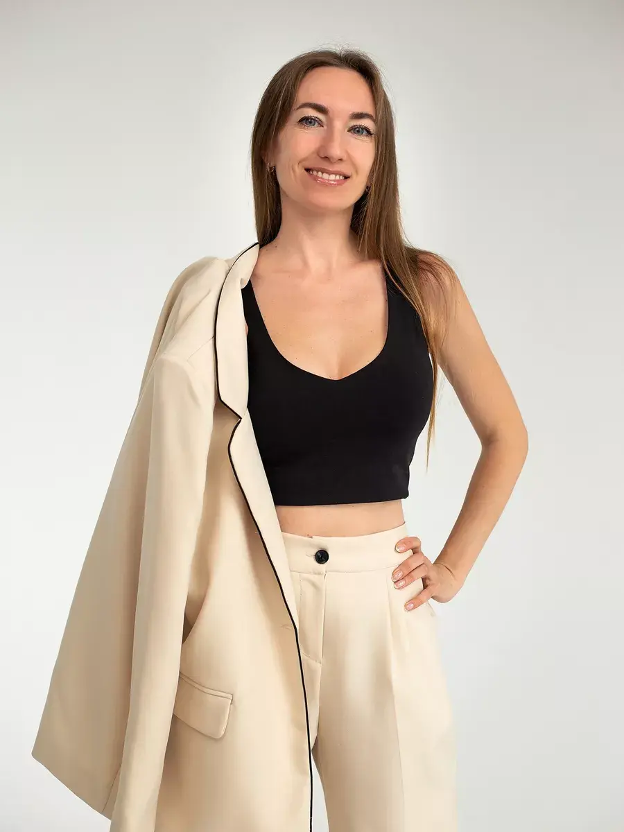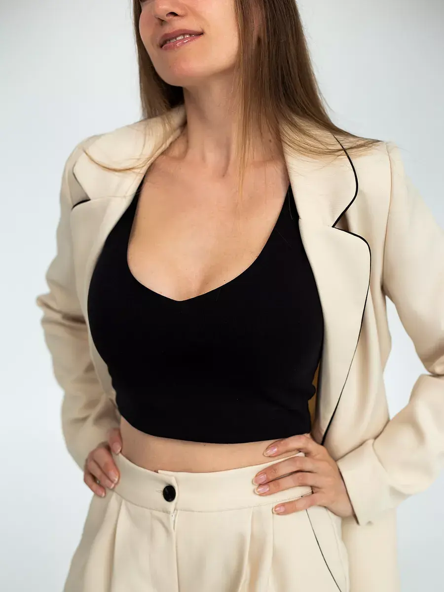 Двойная майка под пиджак поможет составить модный образ на каждый день.