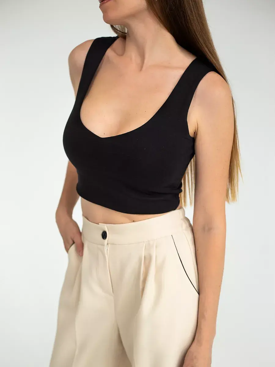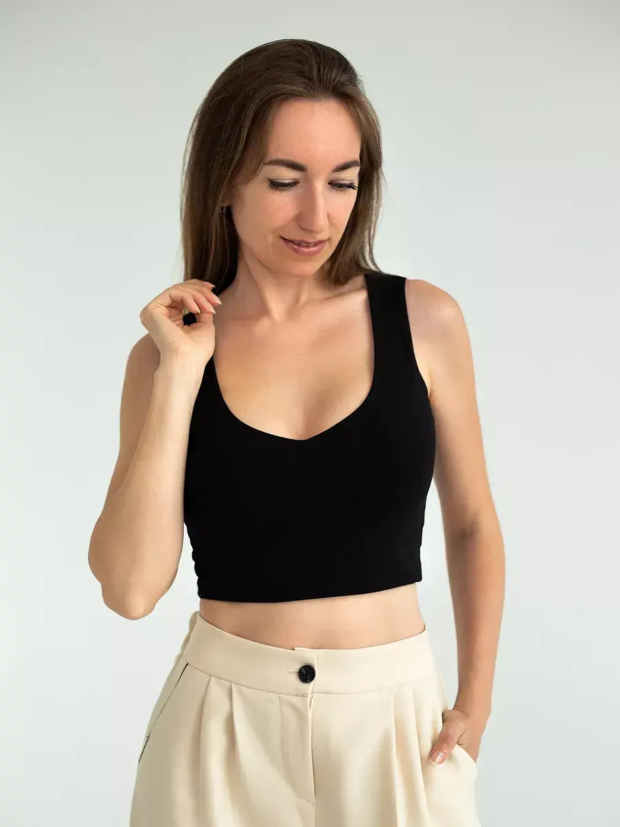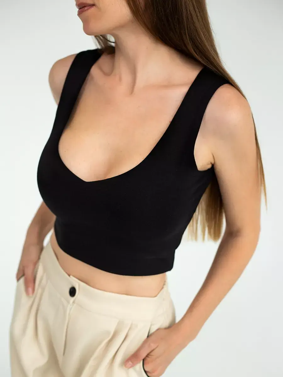 Топ-бра имеет подклад в области выреза каре, что позволяет не надевать бюстгальтер в жаркое время года.