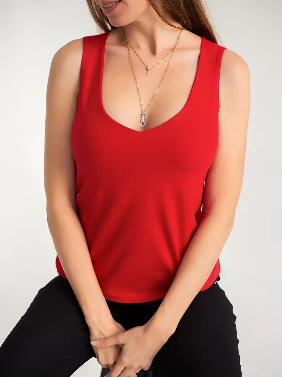 V-образный вырез, широкие бретели, двойной подклад в зоне груди